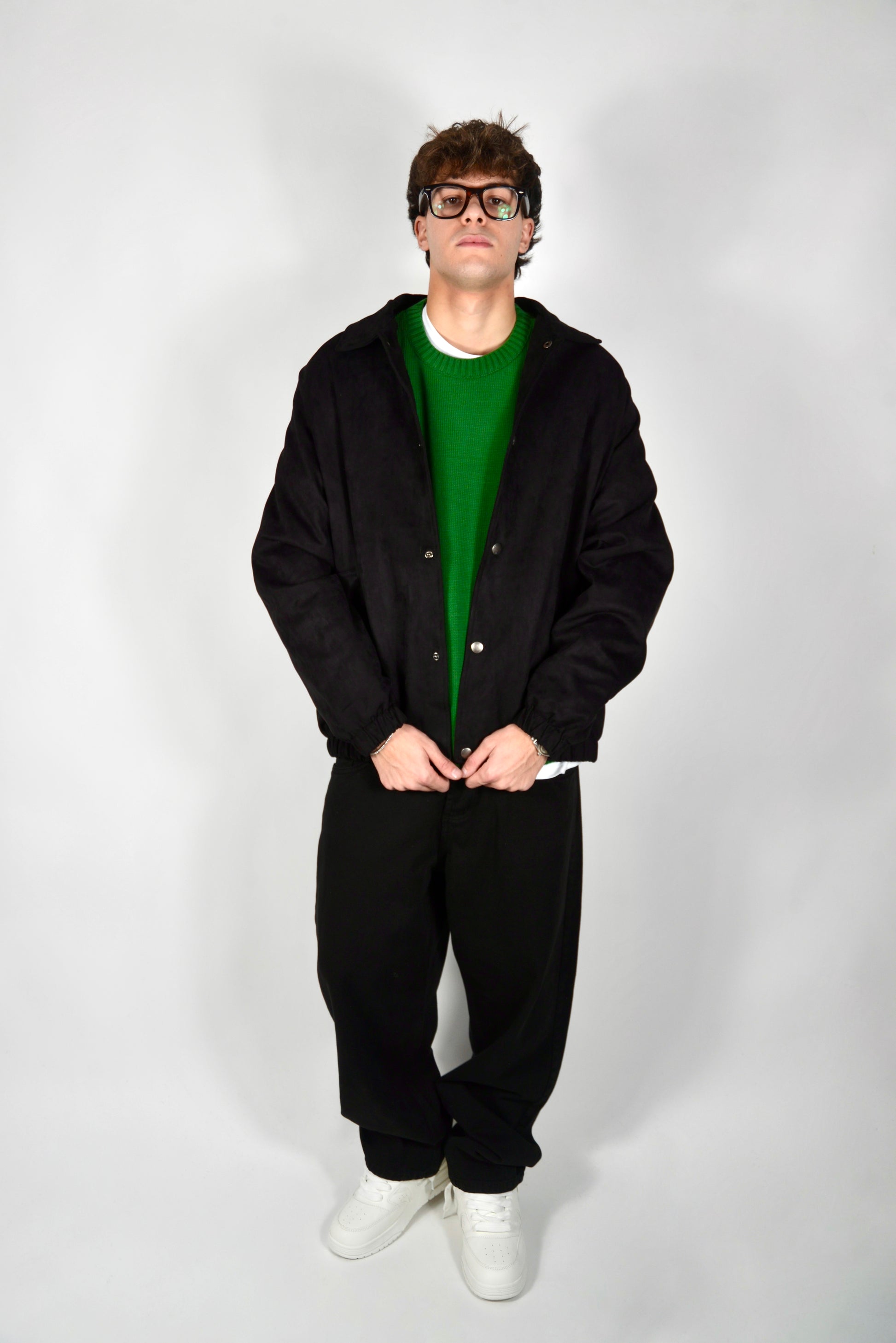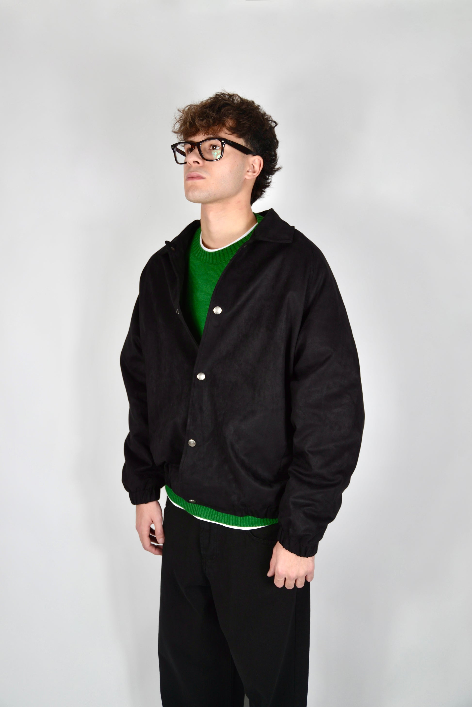 Descrizione: Giacchetto con taglio bomber si contraddistingue per la particolarità del tessuto esterno scamosciato, internamente trapuntato. Presenta chiusura frontale con bottoni a pressione e molle che stringono sulle rifiniture