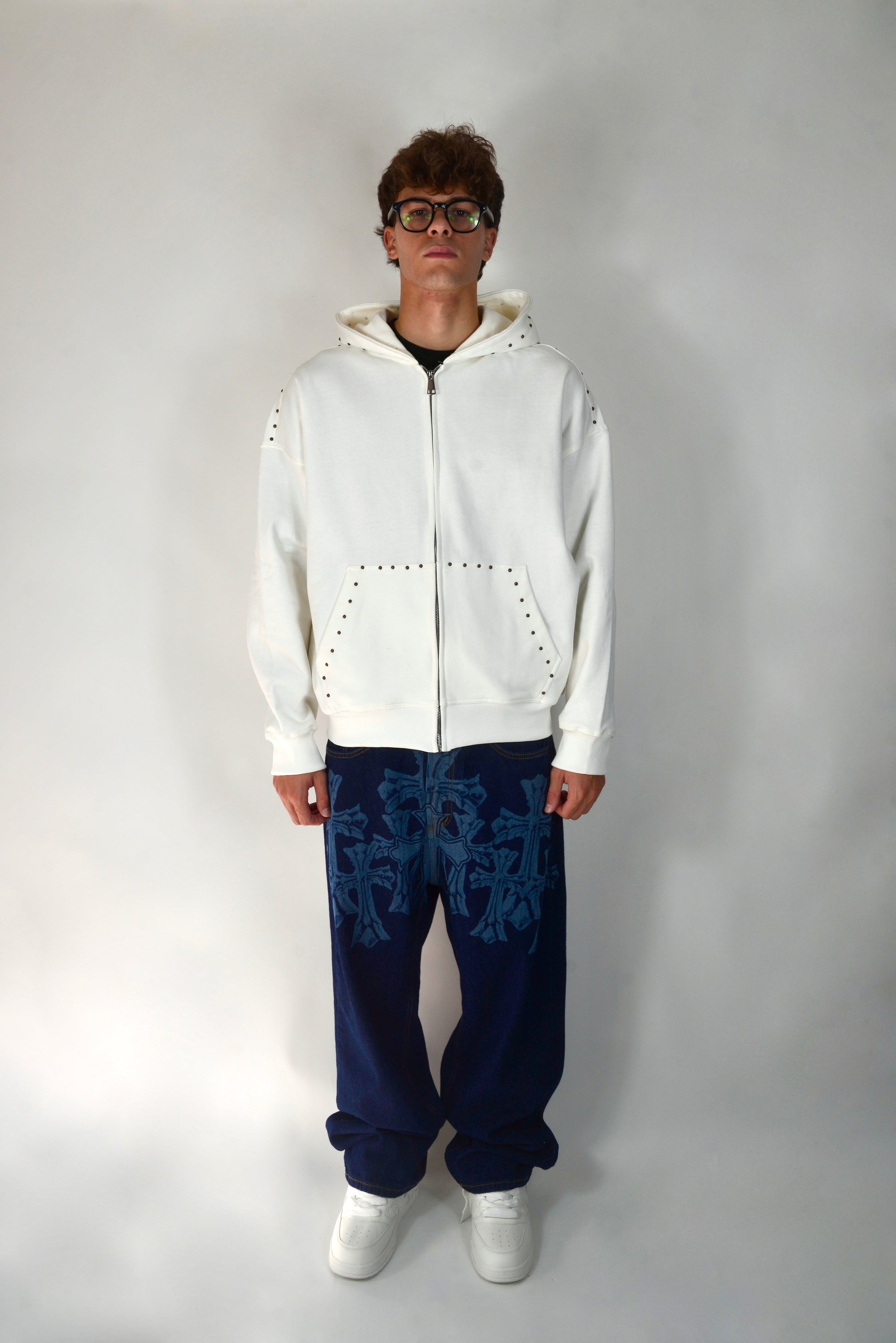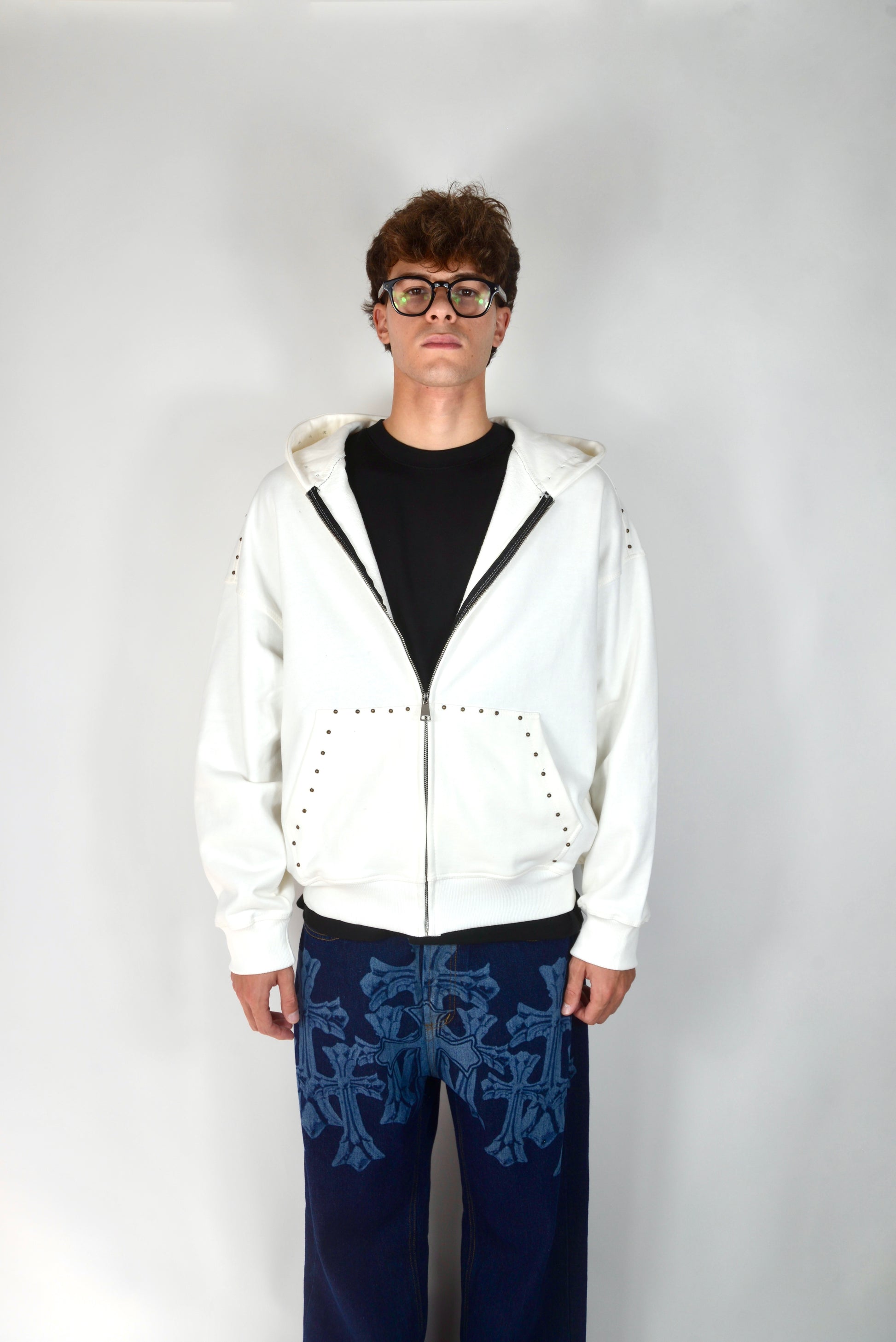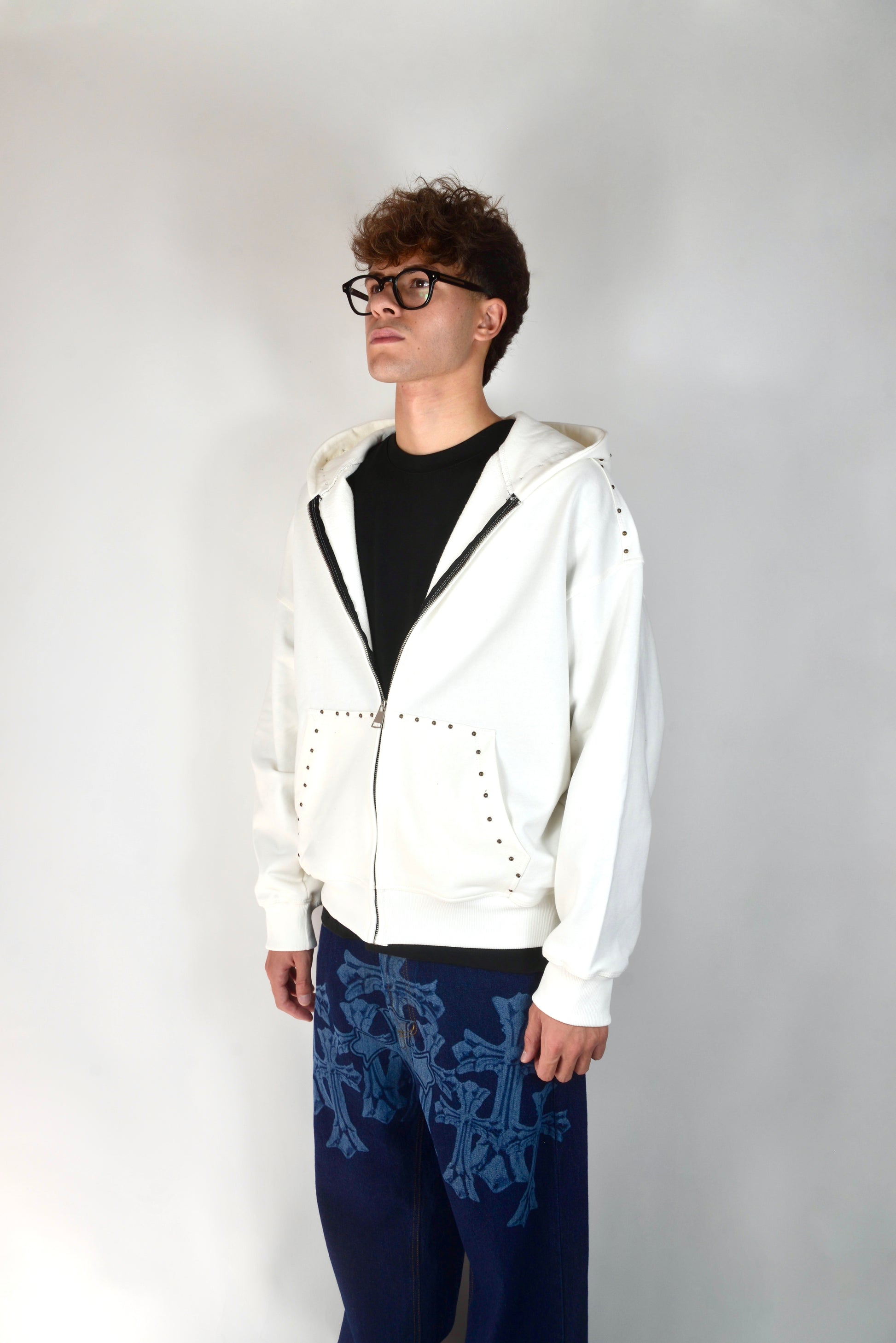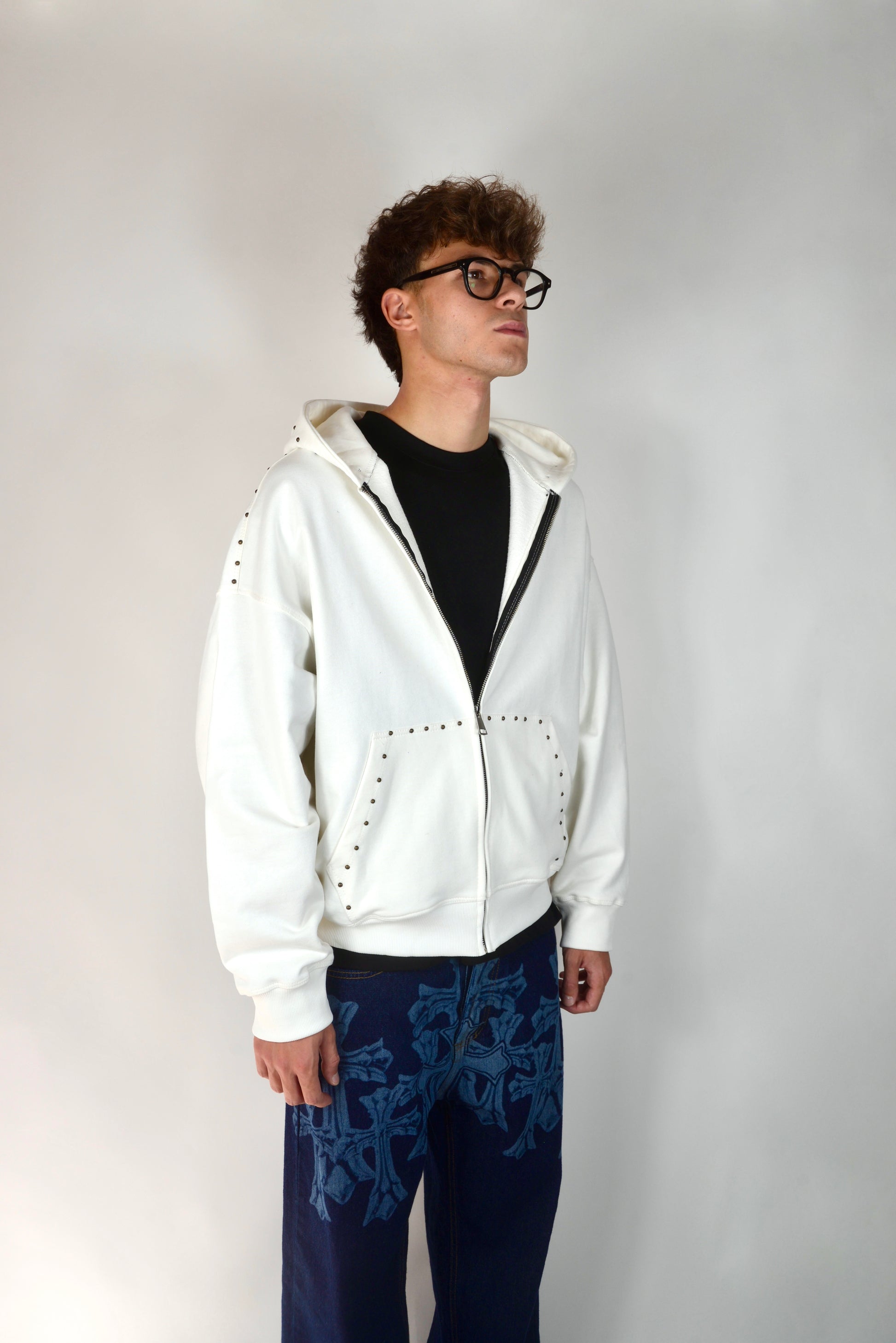 Felpa Con Borchie Bianca