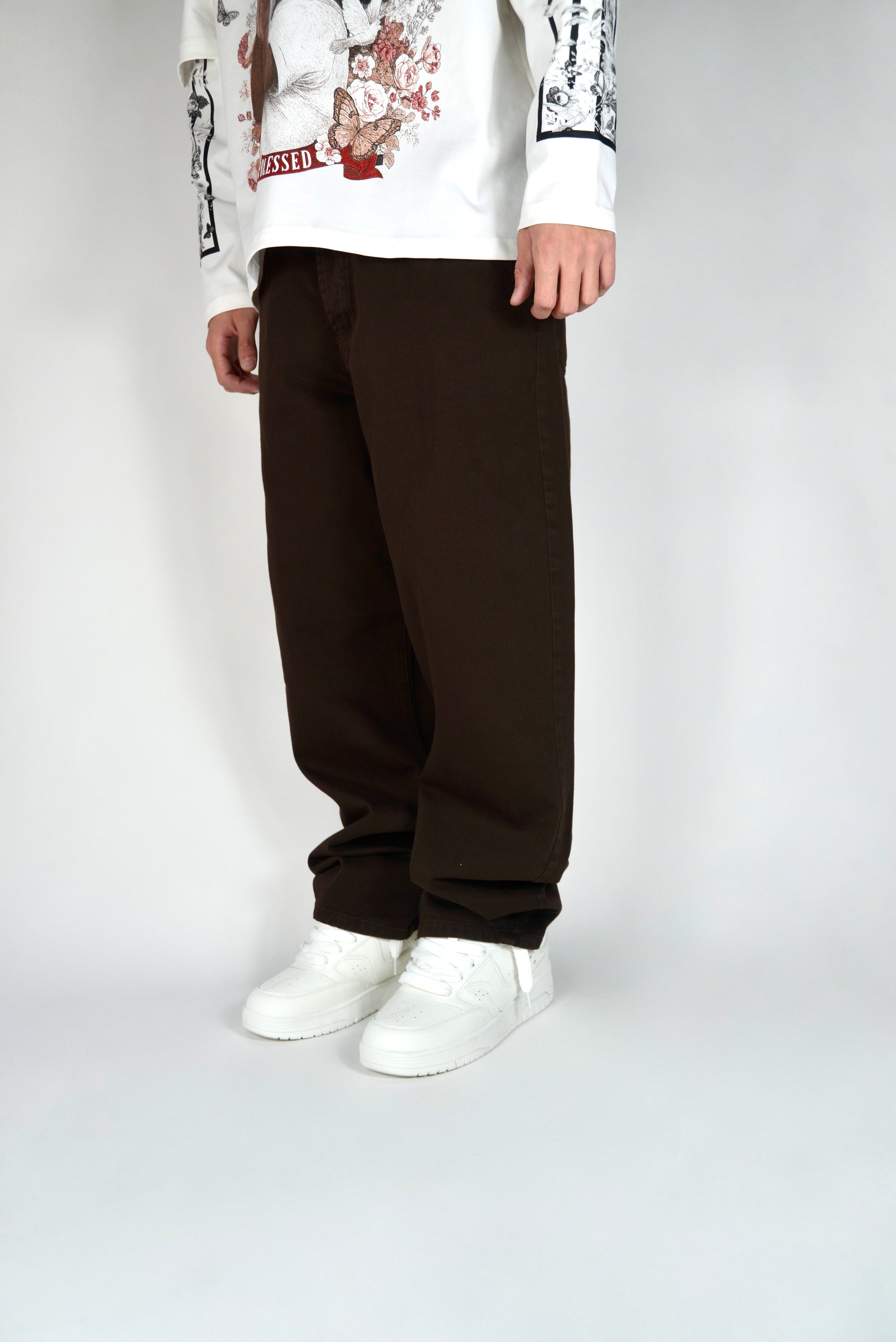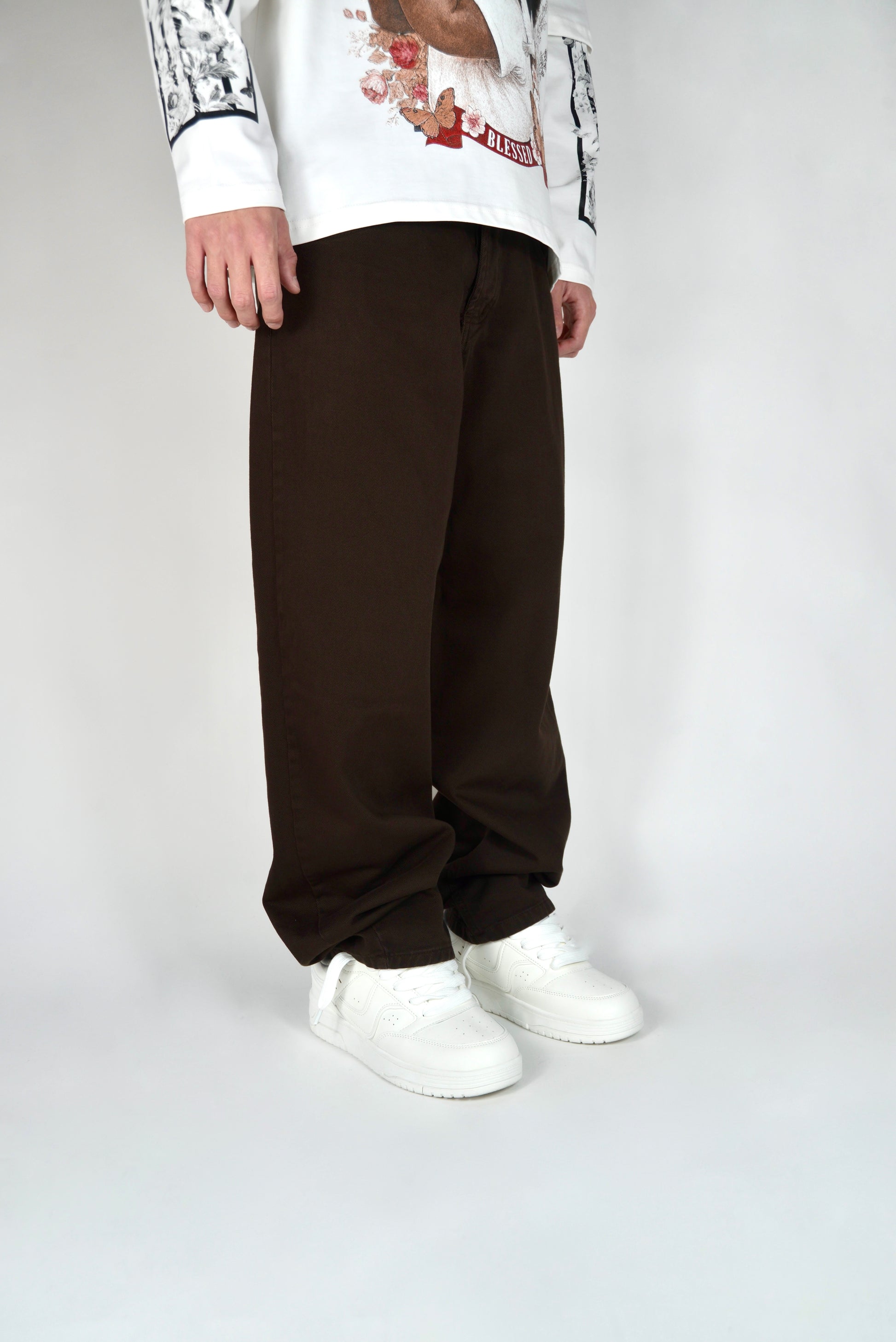Descrizione: Denim total Brown con un fit unico, presenta chiusura frontale con zip e bottone